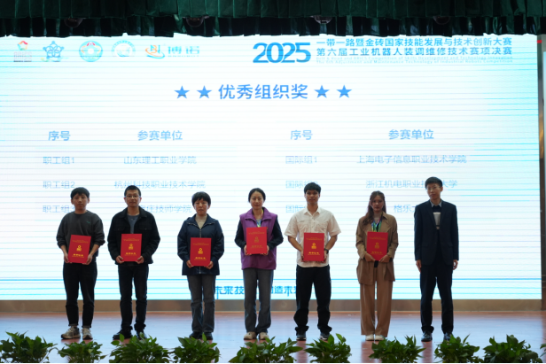 此次大赛作为兼具国际视野与专业深度的顶级技能赛事,吸引了全球152名选手参赛。经过激烈角逐,我院学生魏亦程荣获学生组一等奖,并成功晋级2026年摩洛哥北非国际赛;教师刘爽荣获职工组二等奖。同时,我院还获评学生组最佳组织奖、职工组优秀组织奖,充分彰显了我院在工业机器人领域的教学实力与人才培养成效。