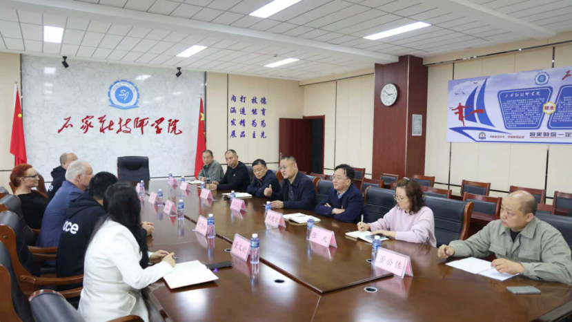 2025年10月16日下午,德国BOSS矫形鞋大师学院矫形鞋大师、教授 Mr. Martin Jaeger,平面设计师Ms. Martina Jaeger,德国河北商会会长、德国莱茵集团董事长房心如,中国康复研究中心假肢矫形中心主任刘劲松,中国皮革制鞋研究院总工程师王占星等一行5人,专程到石家庄技师学院,就矫形鞋设计制造专业共建项目,展开深入洽谈。矫形鞋设计制造专业在中国目前尚处于空白状态,石家庄技师学院有望成为中国首个且是唯一与德国共建此专业的院校。