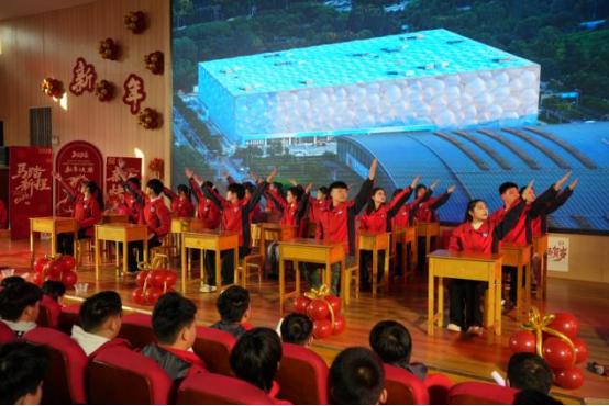 最后,党委书记给全体师生分享了三句英语:第一,No pain, no gain! 没有付出就没有收获。台上每一个精彩瞬间,无论是技能大赛获奖,还是硬气功、拉丁舞,都是师生们辛勤汗水浇灌的荣耀之花,期待明年有更多师生闪耀舞台!第二,Everything is possible! 一切皆有可能!世界技能大赛基地获批、国家高技能人才基地落户、刘景凯同学获奖及省赛4金1银2铜6优胜、电商直播囊括前三,这些曾经的“不可能”都已成真!第三,I will do my best! 面对未来,让我们都竭尽全力,为石家庄技师学院发出自己的光与热!最后,他送给大家一句英文:Go big or go home!要么出众,要么出局!相信新的一年,石家庄技师学院必将勇立潮头,领航前行!最后祝大家元旦快乐!